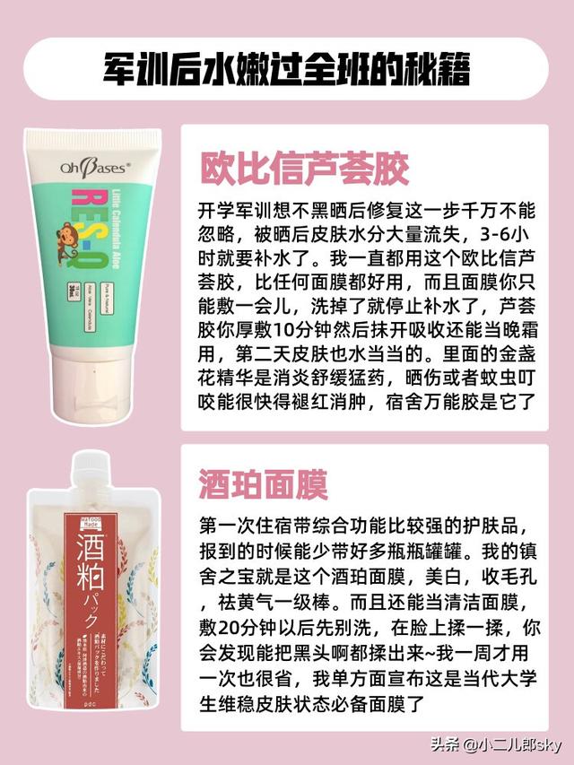 被子、褥子、枕头之类的就别带了,去了学校都能买,想自己带的宝宝还是选择快递吧,带好自己的洗漱用品,尤其是防晒霜绝对不能少,不然军训完回家自己妈咪都不能认你。