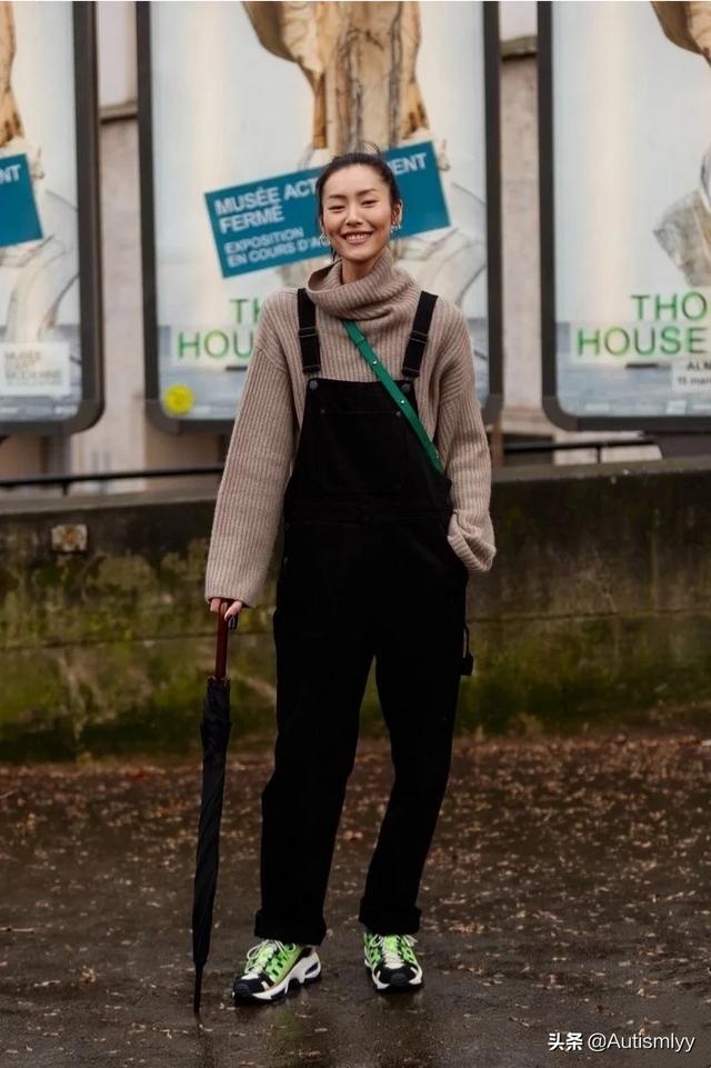 驼色毛衣配条背带阔腿裤,时尚又减龄,可以适当用配饰来修饰细节!