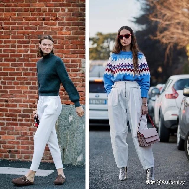 总的来说不管哪一种颜色和图案的毛衣都适合和白色的长裤搭配,这个冬天可以这么尝试哦!