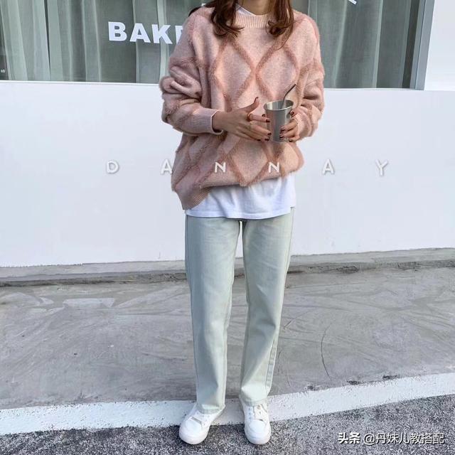 配打底裤,牛仔裤,奶奶裤,休闲裤,都可以,毛衣其实真的挺百搭的
