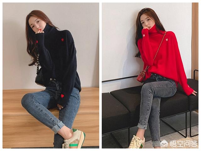 1.高领毛衣搭配青春减龄的牛仔裤,彰显休闲慵懒范。高腰铅笔牛仔裤,更是经典中的经典,修身显瘦秒变大长腿的即视感。对粗腿MM来说,不要随便尝试太显腿形。