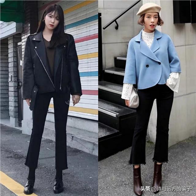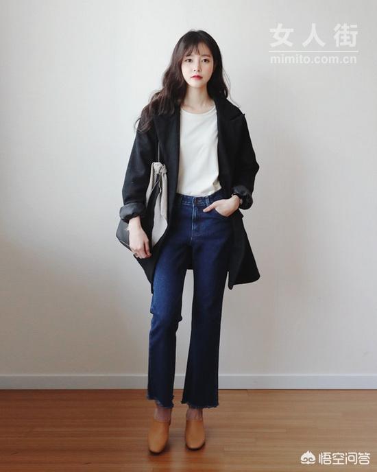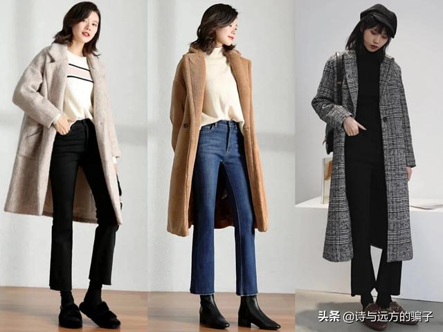 如果你是那种大小腿都比较粗的,微喇修饰小腿,那么上身搭配长外套,比如呢子大衣或者中长款棉服,就能起到完美的遮肉显瘦的效果了,秋冬只露出最细得一截腿,同时又很保暖,完美。
