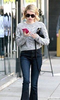上衣不要不长又不短,那样是最无法体现微喇叭牛仔裤的美感的,而且容易显矮和臃肿。
