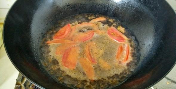 3.西红柿切碎,先用植物油翻炒。再加入适量的水,做出汤汁,水开后盛出备用。