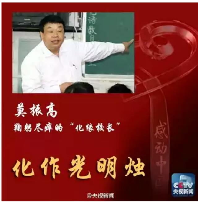 莫振高,学生口中的“莫爸爸”“校长爸爸”,是广西都安高中的原校长。都安是全国贫困县,这个大山里的瑶乡,有着众多因贫困上不起学的孩子。于是,莫振高将“让瑶乡儿女走向世界”作为自己的座右铭,任教三十多年来跑遍每一位贫困生的家,将了解的情况一一记录在册,并用自己微薄的工资资助了近300名学生,圆了他们的大学梦。然而,自己的工资毕竟只是杯水车薪。面对数量众多的贫困学生,这位从未向别人伸手的“莫爸爸”走上了“化缘”之路。他利用休息时间,来到全国各地的机关、企事业单位,做演讲、做动员,只为通过社会力量,帮助更多的瑶乡儿女走出大山。