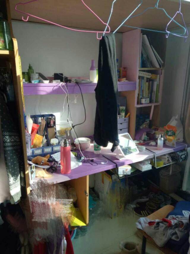 我们的寝室比较的脏乱,有的时候我都不想在寝室里待着。要不是每周三会查寝,我都在想我们寝室会不会都没有下脚的地方。我们寝室是四人寝,不知道为什么,我们寝室有两个女生就是不好好的收拾自己那里,桌子上乱七八糟的东西一大堆,还把自己的东西随地乱放,说了也不听。每次我一说好好收拾一下,要查寝了,他们都是象征性的收拾一下,然后就说收拾完了……我记得在军训的时候我们内务查的比较严,窗台门框都要擦,军训十五天都是我自己一个人擦的,她们根本就不会擦。她们在寝室里特别的乱,可是在外面外人面前简直是干净的不得了,光鲜亮丽的。有的时候就在想,要是她们的男朋友看见她们寝室的状况,会不会分手……
