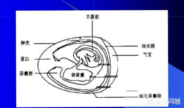 围绕胚胎胚膜内的水,叫羊水。为胚胎发育所需的水环境,具有防震和保护作用,羊水让胚胎能够自由活动,为胚胎提供一个恒定温度的环境,羊水在起初是单纯的生理盐水,后来则蛋白质含量增加,壳膜之下为血管丰富的绒毛尿囊膜,绒毛尿囊膜起着胚胎呼吸器官的功能,氧气的交换是在膜的血管内通过卵壳孔而进行的。尿囊腔是胚胎的排泄器官,内含有尿囊液,起初为透明液体,是单纯生理盐水溶液,以后尿囊液中尿酸盐迅速增加,主要是尿酸盐类物质引起。