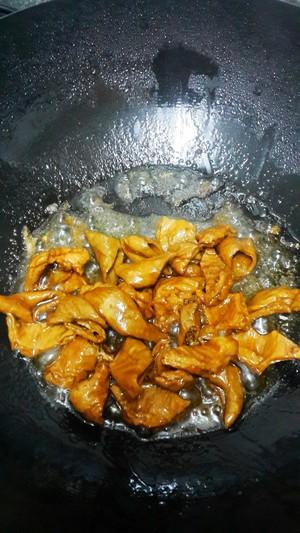 锅中少许底油烧热,放入肥肠,小火炒至焦黄出油。