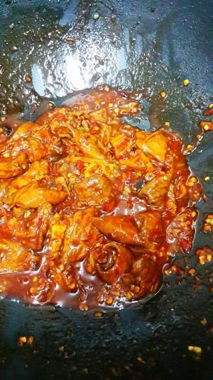 放入葱姜蒜爆香。放入花椒粉、糖、鸡精和胡椒粉翻炒。