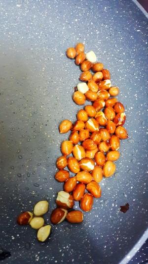 4、油锅烧热,先把泡椒、泡姜、干辣椒、花椒一起放入锅里煸炒