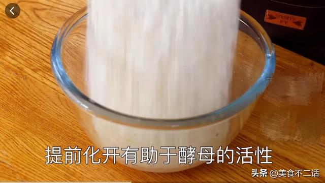 1和面:温水中倒入酵母和糖搅拌至融化,再倒入面粉,边倒边搅拌成絮状后下手揉搓成光滑的面团。