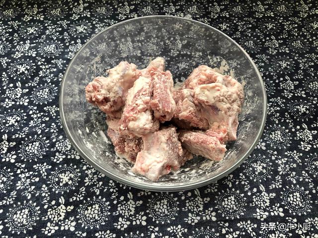 二.具体做法1.排骨先用清水清洗一遍,这一步可初步洗掉一些杂质,然后撒上少许干淀粉,用手抓匀,多抓几次,然后再用清水洗一遍,加淀粉的目的,是为了更彻底的清洗掉排骨的杂质和血水。