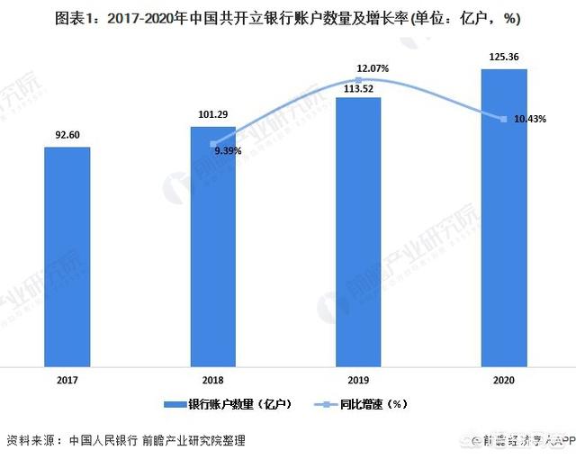 截至2020年末,全国共开立银行账户125.36亿户,同比增长10.43%、增速较2019年末下降1.64个百分点。