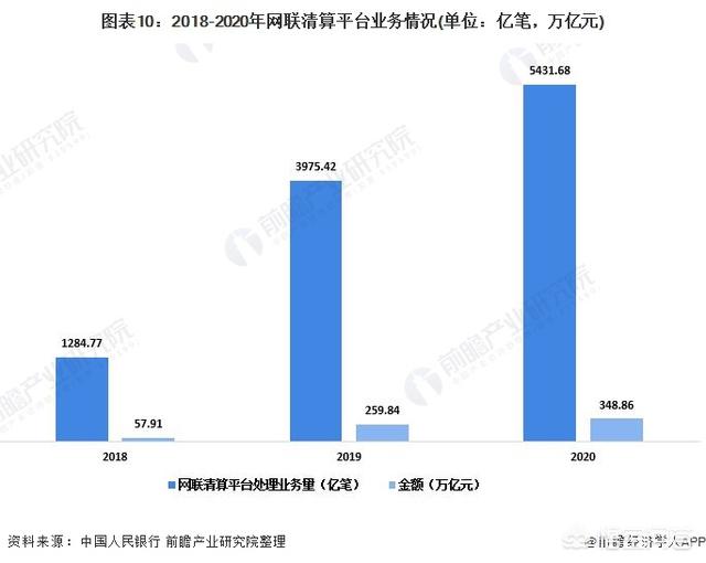 截至2020年末,全国共有560家商业银行和133家支付机构接入网联平台。2020年,网联清算平台处理业务5431.68亿笔,金额348.86万亿元,同比分别增长36.63%和34.26%。日均处理业务14.84亿笔,金额9531.79亿元。