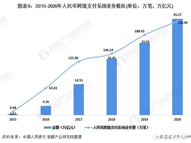 2020年,人民币跨境支付系统处理业务220.49万笔,金额45.27万亿元,同比分别增长17.02%和33.44%。日均处理业务8855.07笔,金额1818.15亿元。
