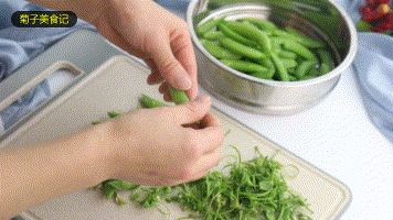 ▼2、处理青豆:把老丝祛掉,洗净沥干水
