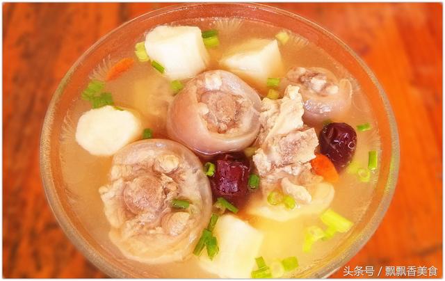 猪蹄刮净去毛。剖开两边后切成数小块, 与牛膝一起放入大炖盅内,加水500毫升,隔水炖至猪蹄熟烂,去牛膝,余下猪蹄肉和汤食用。