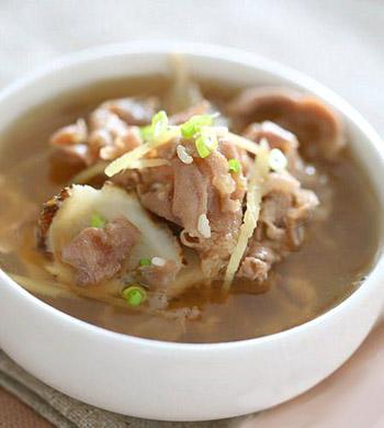 蚌肉炖老鸭:蚌肉60克,老鸭肉150克,生姜2片。将蚌肉洗净;老鸭肉洗净斩件;生姜洗净。将所有的材料全部放进炖蛊中,然后加入适量的开水,盖上盖子进行炖煮。开文火进行隔水炖煮两个小时,然后调个味道就好了。