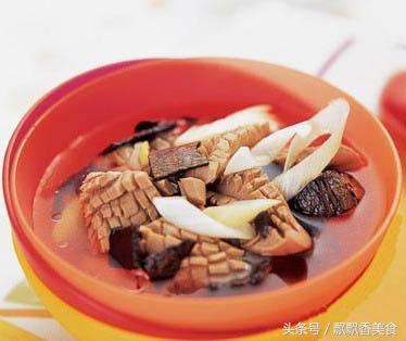 做法:将鹿鞭切成片,用酒浸泡一夜;然后和鸡、八味中药下锅加清水,炖煮至熟,下盐调味食用。