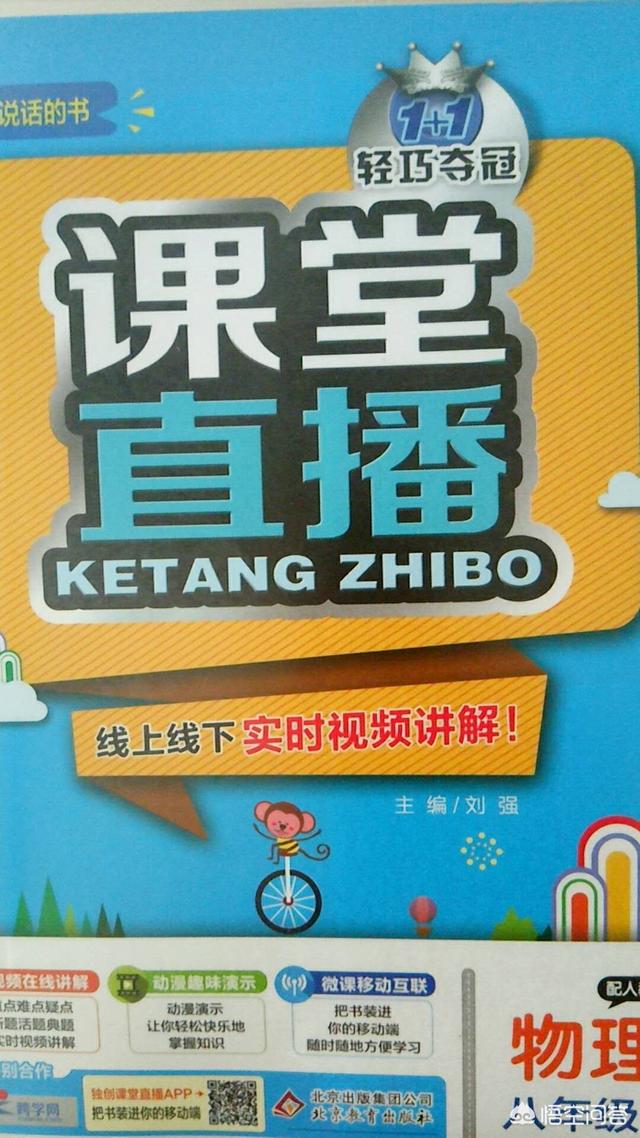 这本书看完之后,孩子可以自己预习八年级上学期的物理课本,课本刚开始也不难,很容易看懂,如果想再深入的理解知识点,可以看一看《课堂直播》这本书,这本书的好处在于每一个知识点都有试题,而且试题配有视频讲解,只要扫描书中试题旁边的二维码就可以看视频。对于自学的人是非常方便。