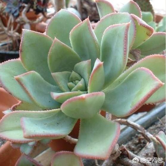 红缘莲花掌,景天科莲花掌属多肉植物,原产地加那利群岛,为亚灌木植物,分枝比较多,叶片主要生长在茎杆的顶端和分枝的顶端,呈莲座状,叶片倒卵形,叶色青绿色至青黄色,叶缘有睫毛状纤毛。叶面和叶背光滑,有一层薄薄的白霜,叶尖急尖。红缘莲花掌喜欢、阳光充足、温暖、干燥、通风的环境,耐干旱,保持盆土干燥能耐零下3度低温。稍耐半阴,过于荫蔽叶片变绿且容易徒长拉长,降低观赏性。夏天不要暴晒,适当遮阳,节制浇水。土壤可用肥沃又排水透气好的养殖土种植,繁殖方式可以用叶盘扦插,很好繁殖的品种。