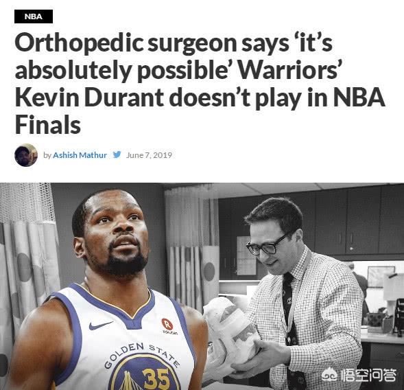 值得一提的是,美国医学专家布拉德-博德金还在这场G4的赛前详细的分析过凯文-杜兰特的伤情,他得出的结论也是杜兰特在总决赛中很难复出了,他表示:我们一开始的诊断是一级扭伤,至少需要两周的恢复时间,现在杜兰特的伤势已经恢复了4周多,所以可能是1级+、甚至是2级,就算是一级也是一个很难衡量的伤,杜兰特何时能恢复并不知道,他若强行登场肌肉可能直接撕裂,他要成为自由球员了,他不会去冒险。从杰伦-罗斯与布拉德-博德金的分析中我们能看出杜兰特这颗救命稻草看上去难解勇士困局了,没有杜兰特的勇士如何能跟运动天赋、身高臂长的猛龙相抗衡?