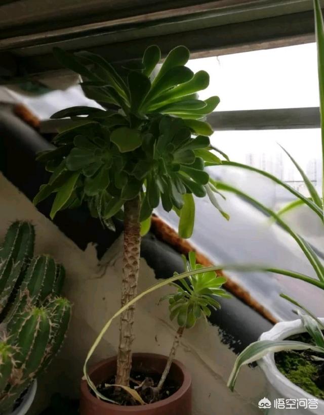 这颗是莲花掌虽然是老桩倒是不难发现这很题主的莲花掌很像!还是那句话莲花掌,十分耐旱,无论冬夏都不需要怎么浇水。多浇水必然会徒长,而且很难看,但是晒太阳能让莲花掌更紧致和披上紫色围巾十分好看!