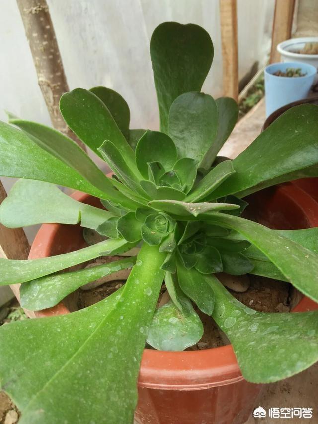 题主你好,我是小李,很高兴回答你的问题,你种的这棵植物,是莲花掌里面的巨无霸玉龙观音。