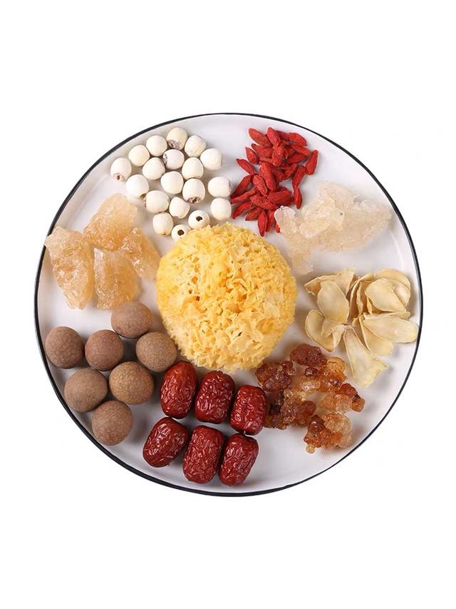 干银耳15克,干白莲100克,冰糖80克;红枣15克、枸杞10克。