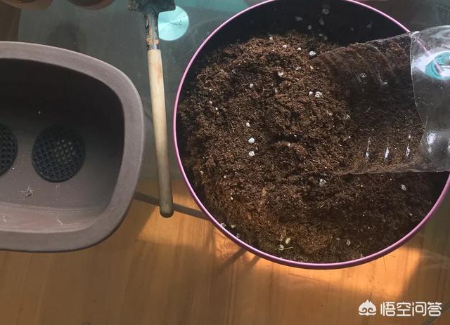 花盆底部应放粗粒土,然后再放细粒土,将植株扶正,一边加土一边把植株略上提,使根系舒展。土不要加得太满,以方便以后浇水。