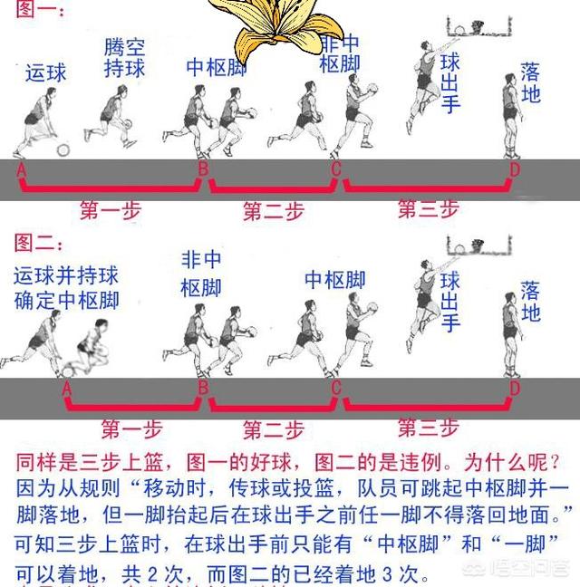 超简单的说:第一步是 左脚落地的同时手持球(不再拍球) 第二步右脚~~第三步左脚起跳 就OK了 刚开始都感觉别扭,没够三步,其实第一步是手持球的同时动作。