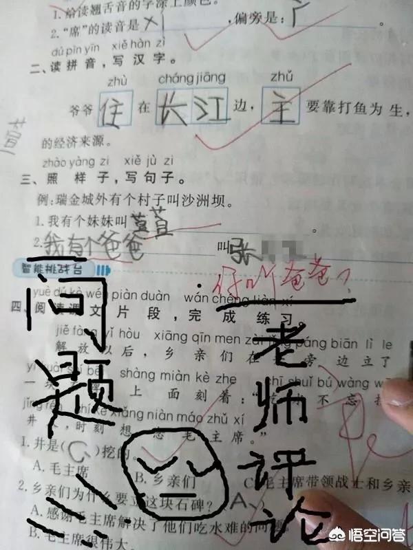 以为是作文题,孩子闹了笑话,冲着看熊孩子来的。看到题目后小编认为孩子答得确实不好,但绝不能说是错的,相比而言老师的点评更过分,有失风度!附图: