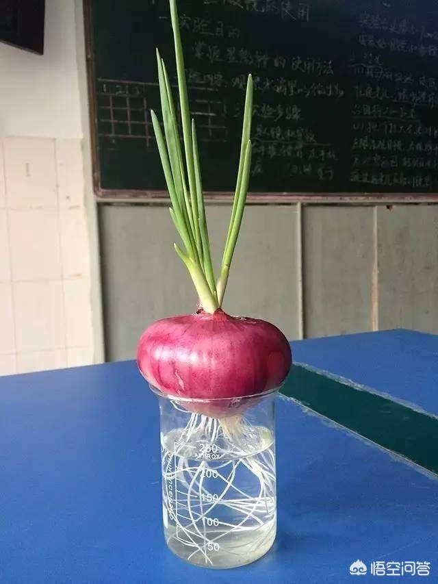 5.洋葱:只要将切掉的底部部分种到盆里,就能长出新的洋葱,是非常适合家里养的。可以土培也可以水培。