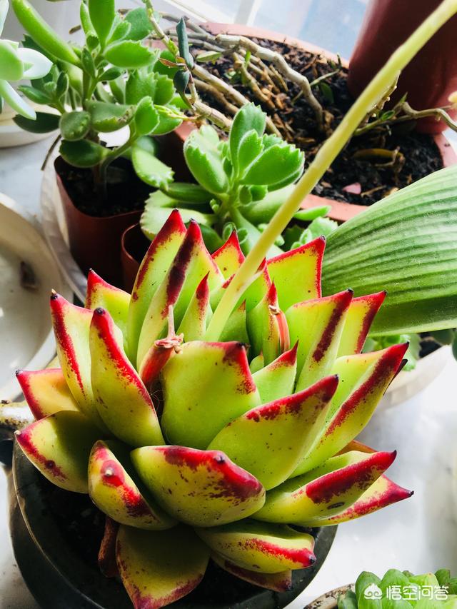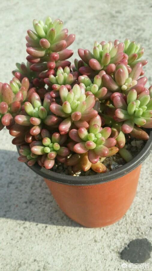 当多肉植物照射的光线多且长时,其叶片颜色就为暗红色。当多肉植物在没有直射光的室内养护时,叶片就为翠绿色。所以我们在养护多肉植物的时候,可以根据自己的喜好,让多肉植物接受不同的太阳光的照射。如果你喜欢它长成绿颜色,那么就尽可能的不让它接受太阳光的直射。如果你想让它变成红颜色,那么,你就只让它避开夏季中午的强烈光线,而其它季节进行全天光照就可以了。然后,你还可以通过调整光照的强度和时间的方法,将多肉植物叶片的红色进行颜色深浅的调整。以上就是我对多肉植物在光照方面的调整小技巧,朋友可以在养护的过程中,不断的摸索总结。