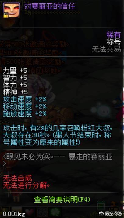很多称号都是可以召唤人偶的,最近的是去年还是前面的粉红大叔称号,攻击时有几率出现粉红大叔可以帮助你踩地板。