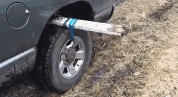 轮胎捆绑木棍!