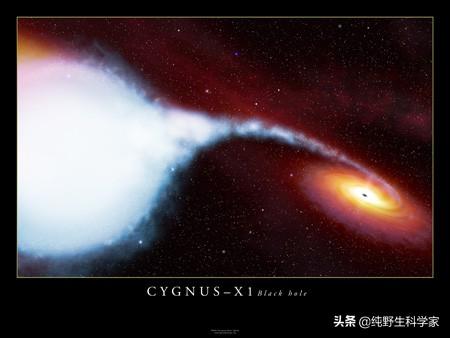 图:天鹅座X-1系统想象图。天鹅座X-1曾经是一个稳定的双星系统,两颗恒星绕着公共质心旋转。后来其中一颗恒星“燃料耗尽”,进入恒星演化晚期阶段,发生了超新星爆发。