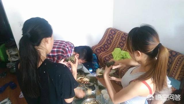 广东的两个沙子来的时候,正值端午节,大家一起包粽子。