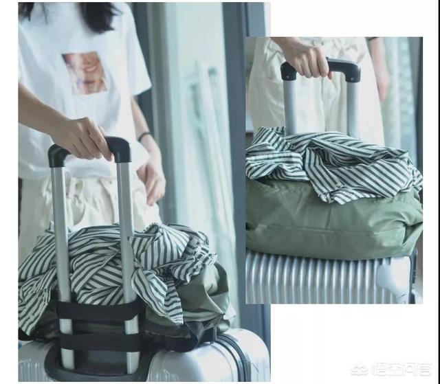 二代的升级版增加了拉链,内袋跟斜挎,颜色很百搭,甚至街拍起来还很有范。尼龙手提袋套在行李箱拉杆上,还能做行李袋,简单方便。