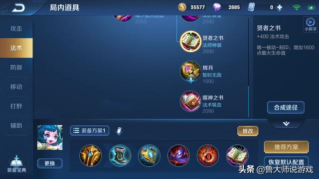 我这里给楼主推荐一套出装:辅助装和鞋子是根据阵容来决定相信大家都知道,主要是后面四件装备,然后依次是,极寒风暴,帽子,不死鸟之眼和贤者之书。下有图可参考希望能帮到楼主