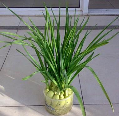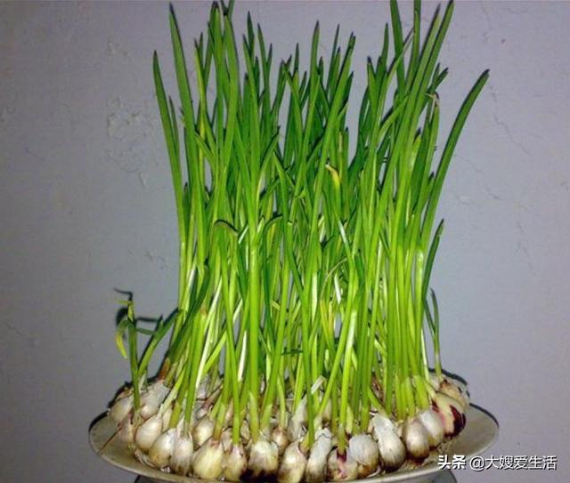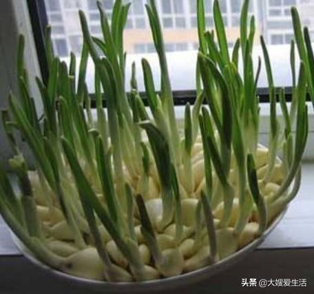 这个方法比土培育更简单,但有一个缺点,只能采收一茬,第二茬非常勉强。因为使用的水是自来水或河水,里面没有营养成分,蒜苗的生长全靠蒜瓣的营养。