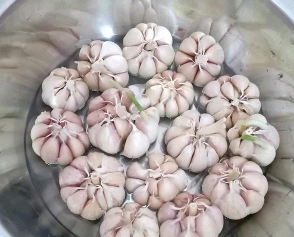 - 把大蒜头中间的芯子杆去掉。蒜头底部须根也去掉。