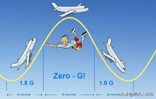 NASA让宇航员在一架巨大的飞机上飞行,以此让他们感受微重力。昵称为“呕吐彗星”的飞机像过山车一样爬上天空,在上方瞬间漂浮,然后滑向另一侧,直到它到达与开始时相同的高度。飞机的机鼻开始弯曲后,其乘员立即开始“漂浮”。当飞机的身体最终与地球表面平行时,宇航员 “漂浮”不少于三十秒。