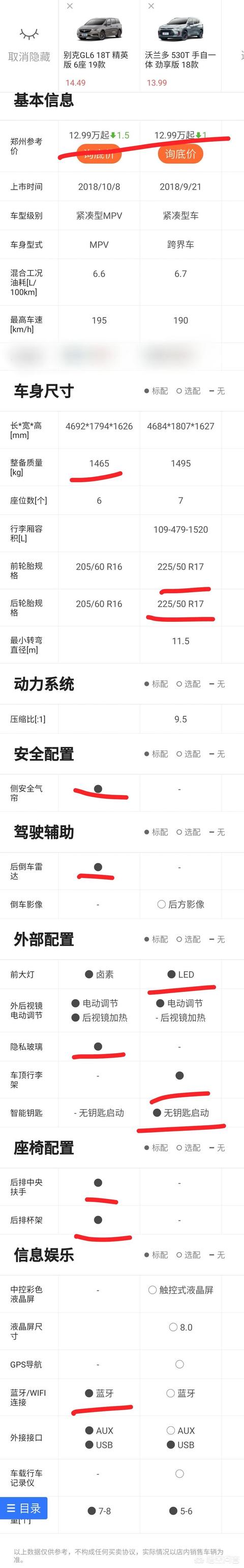 沃兰多的售价区间,老实说在同级别MPV车型里来说,不算高(不过最低配和次低配居然有两万元差价,这显然是不合理的),而且据说终端好像还有优惠,这也是沃兰多上市之初就斩获4000多台的原因之一。不过既然已经归为MPV,我们不妨看看它和师出同门的别克GL6相比。是否更有竞争力~~