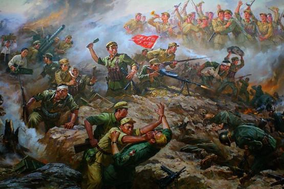 塔室内部还有几幅描绘中国人民志愿军在朝鲜浴血战斗场面的壁画。
