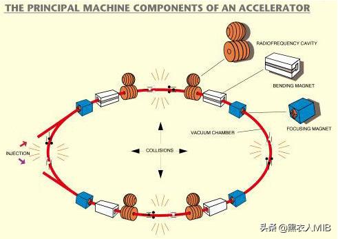 粒子对撞机是在高能同步加速器基础大型粒子对撞机上发展起来的一种装置,主要作用是积累并加速相继由前级加速器注入的两束粒子流,到一定强度及能量时使其进行对撞,以产生足够高的反应能量。