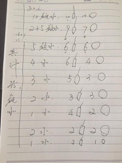 这个需要细心算就可以算全的,先把钱全部买水,记录下数量,再拿盖子和瓶子换水,记录下数量和剩余的盖子数和空瓶数,再拿盖子和瓶子加上上次剩余的盖子和瓶子去换,如此循环,直至所有盖子和瓶子都不够换了,就算结束了。主要注意上次剩余的盖子和瓶子要加上去。