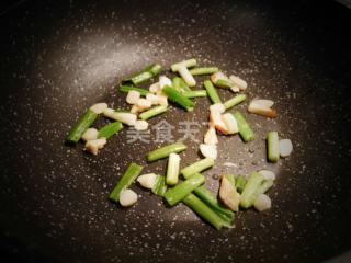 5同一锅内再倒入少许油,放入切好的葱姜蒜,炒到出香味。