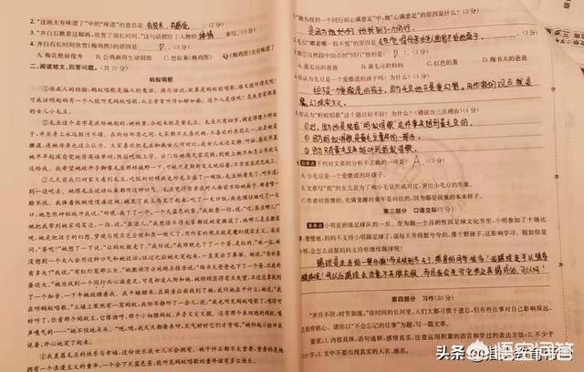 所设题目涉及描写手法以及表达效果,文中人物形象及思想情感的分析等,同样其难度堪比中考题。