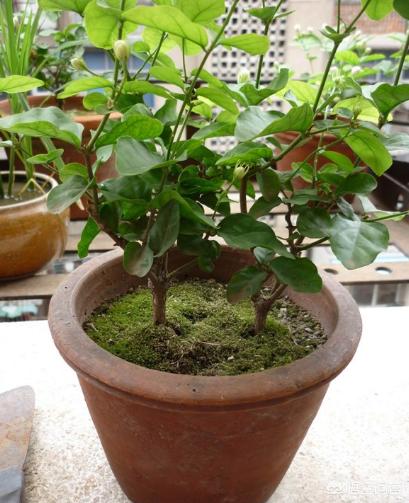 4.土壤。新买的茉莉花都是园土,容易板结。换盆的时候用偏酸性的土壤。那么怎么辨别酸性土壤呢。酸性土壤一般都是黑土,抓在手里仔细的看里面有米粒大小的土粒,比如深山里肥沃的黑土,森林里的腐叶土都是酸性土壤。花店也可以买到买腐叶土,和肥料和普通的土按照3:2:1的比例混合,栽种茉莉花最好了。